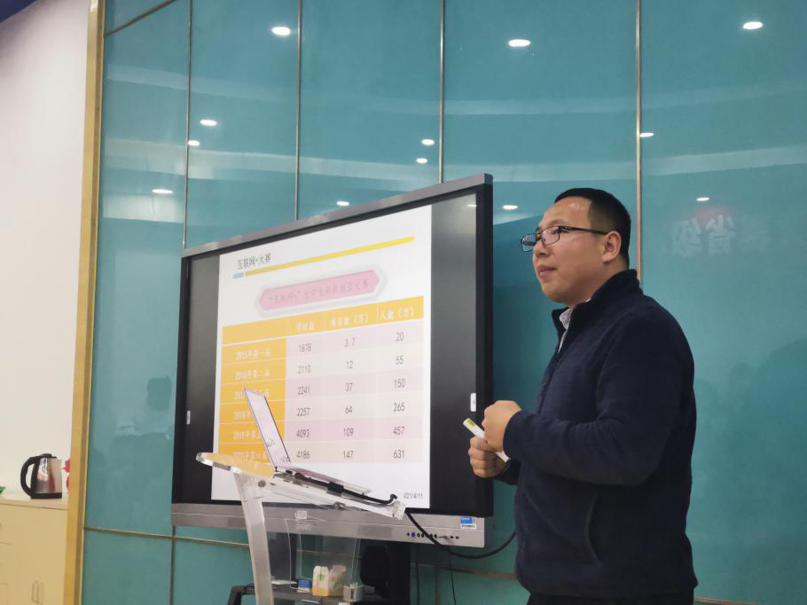 在项目挖掘方面,吕博士指出,项目不是比赛比出来的,而是经过不断创新、挖掘、打磨出来的,一个好项目只有在精准打磨过程中才能变得更好、更美、更优!同时,吕博士为大家分享了大赛项目挖掘的首要原则,他建议大家应认真研读大赛文件、评分规则,从有、无成品两种情况来区分、思考、并进一步构思和完善项目。吕鹏博士总结道,值得挖掘的项目一般分为热点追踪、贴近现实和本校优势三大类,挖掘项目要善于利用本校优势,盘活专业资源,寻找项目创新点,积极进行跨校合作。而团队组建在大赛评分也占有一定比例,在挖掘项目的同时要利用好规则,进行学生、教师团队的组建。最后,吕鹏博士为大家分析了“2019年职教赛道国赛金奖---‘尿宝’”项目案例,同时针对我校具体情况给出了一些备赛思路建议。